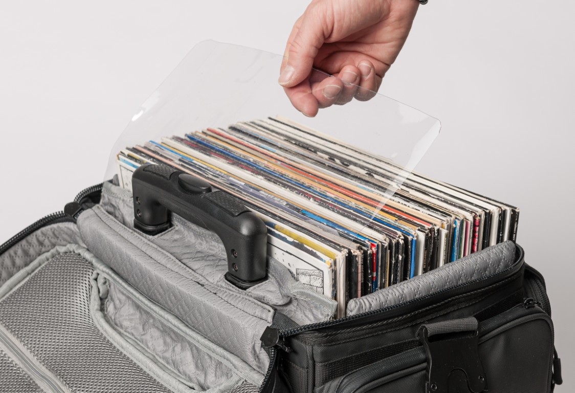 No seu interior, há espaço suficiente para computadores portáteis, caixas de ritmo, pequenos controladores e até vinis de 12 polegadas.