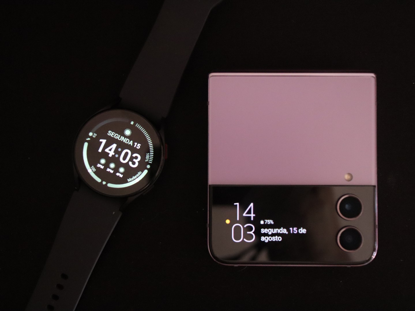 Este ecrã secundário pode ser usado como complemento visual com um Galaxy Watch5 (falarei dele em breve, já que me chegou ao mesmo tempo). Não é segredo para ninguém que a marca quer criar e reforçar o seu próprio mundo para cimentar a posição em relação a Apple.
