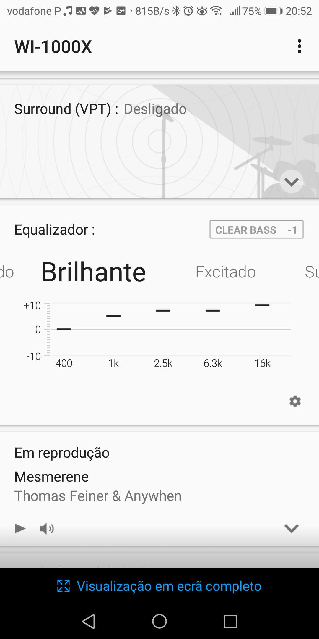Por falar nele, podemos escolher o tipo de ambiência, mas confesso que este género de equalizações nunca foi eficaz (arena, palco, discoteca, essas coisas) e que poucas diferenças consegue, parecendo mais que estamos a usar um capacete de mota ou um escafandro.