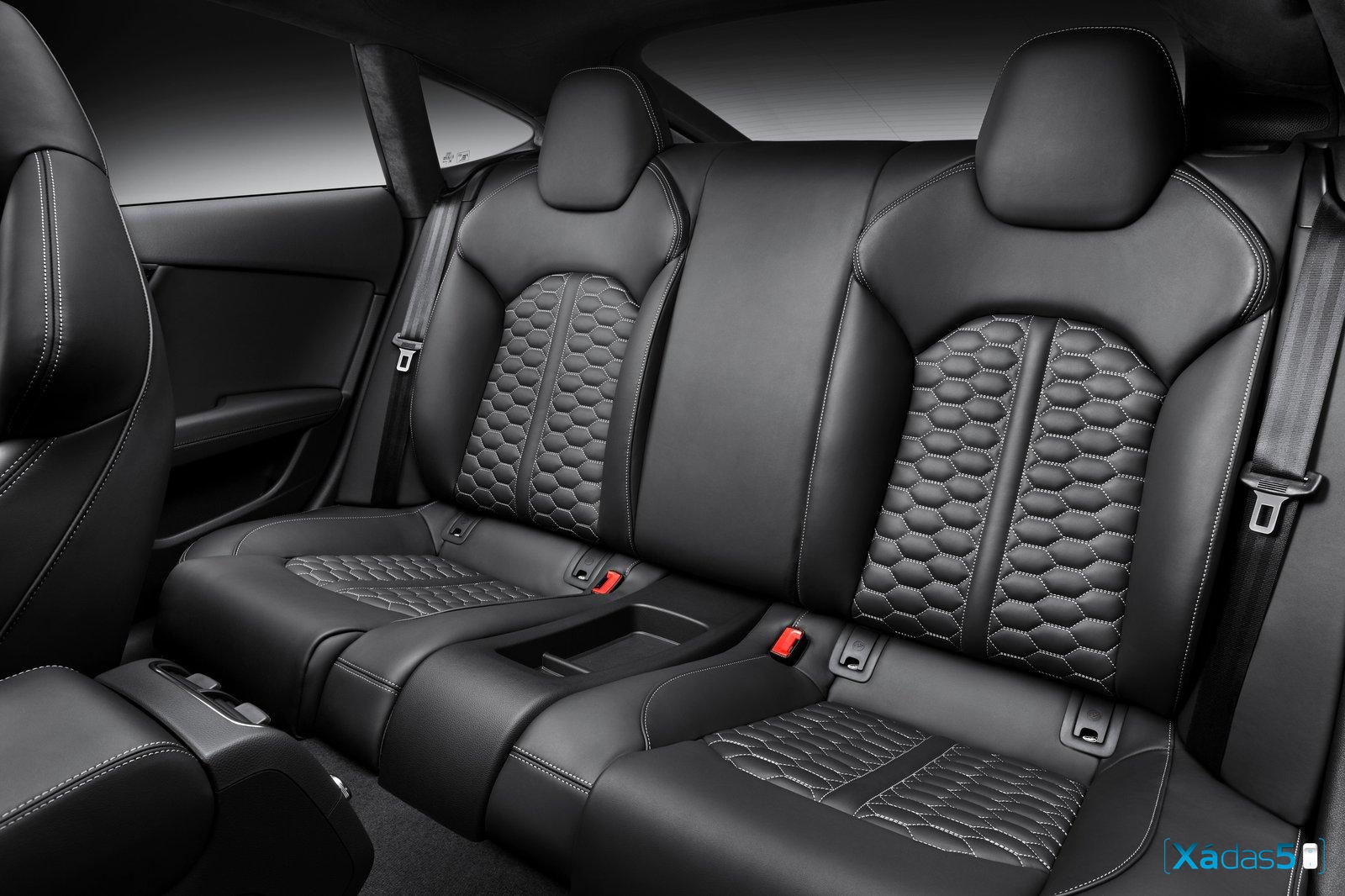 No interior, tipicamente Audi, o volante desportivo em couro de três raios achatado no fundo, manómetros pretos com escala em branco e ponteiros em vermelho, indicadores da pressão do turbo e da temperatura do óleo, acabamentos em carbono e a possibilidade de escolher entre estofos em couro ou em couro e alcântara.