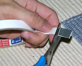 Primeiro é preciso remover os filamentos na cabeça da escova, depois aplicar fita autocolante de dupla face e finalmente aplicar a lixa pretendida na fita autocolante.