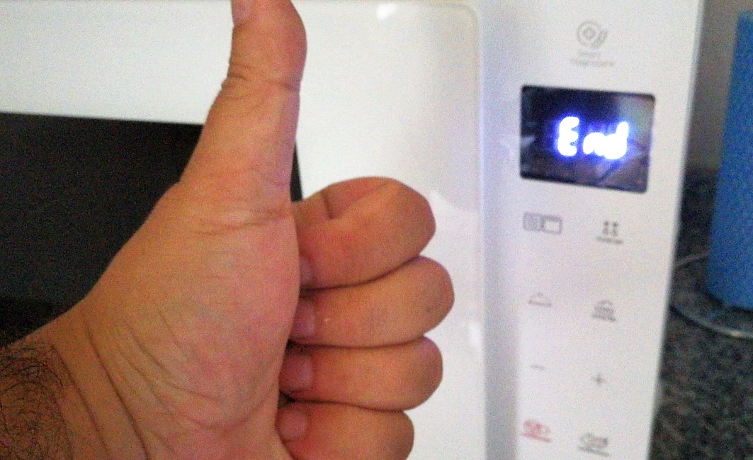 Foi pena terem-me vindo levantar este matulão tão depressa, logo na altura em que lhe estava mais dedicado. Este LG NeoChef Smart Inverter precisa de alguma aprendizagem pois é bem mais que um microondas: com ele grelhamos, assamos, cozemos e derretemos (manteiga, claro está). Mas poupamos tempo e louça suja e pode realmente vir a ser o centro operacional da bancada.
