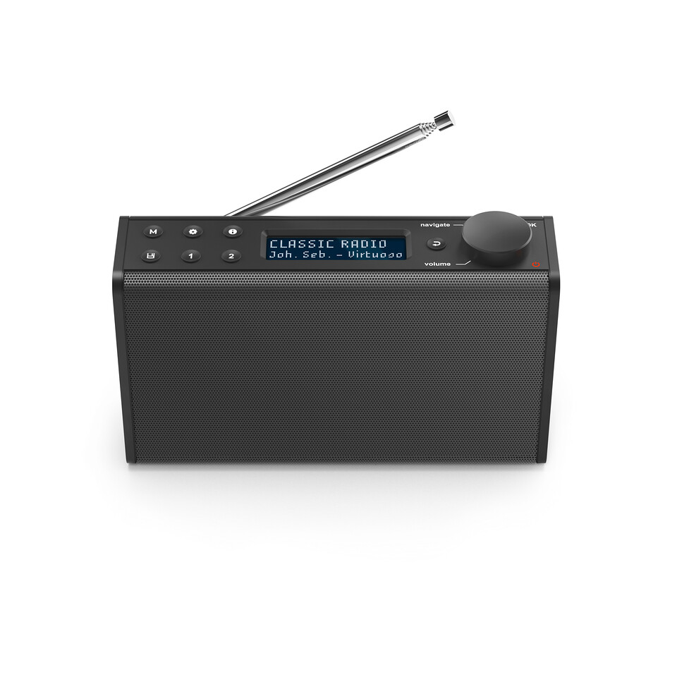 O Hama DR7USB é um rádio, sim, um rádio, que tanto funciona com pilhas como através de um cabo micro-USB que se pode ligar à tomada através de um carregador normal.