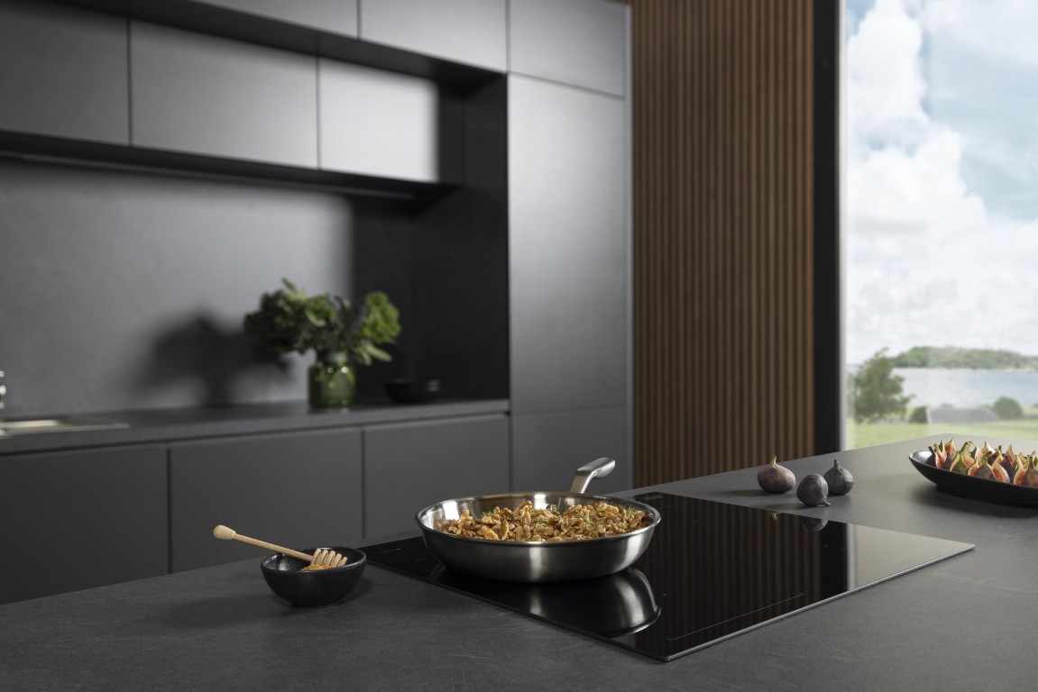 Uma linha pensada para cozinhas contemporâneas, com superfícies amplas em vidro e acabamento escuro. A interface de utilizador intuitiva e conectável complementa uma porta tátil inovadora, resultando num painel frontal nivelado, minimalista e funcional. A construção modular reduz o impacto ambiental através da optimização de materiais.