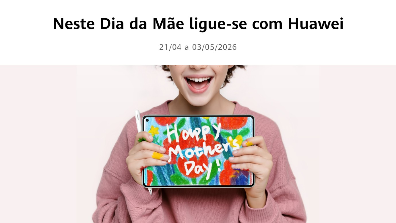 A Huawei entra no Dia da Mãe com uma campanha que mistura tecnologia, design e um pequeno empurrão financeiro – 8% de desconto com o cupão A8MAEPT.