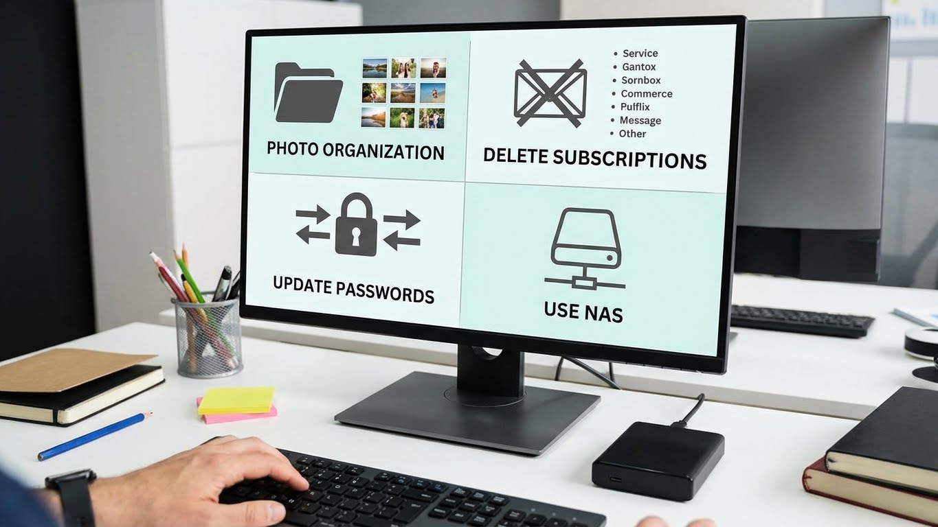 Temos 47 mil fotografias repetidas, screenshots de memes que nunca mais vamos ver, e aquela série de 200 fotos da mesma paisagem porque não sabíamos qual ia ficar melhor. O Google Photos e o iCloud têm ferramentas de organização automática decentes. E é uma tarefa perfeita para fazer no sofá enquanto fingimos que estamos a ser produtivos.
