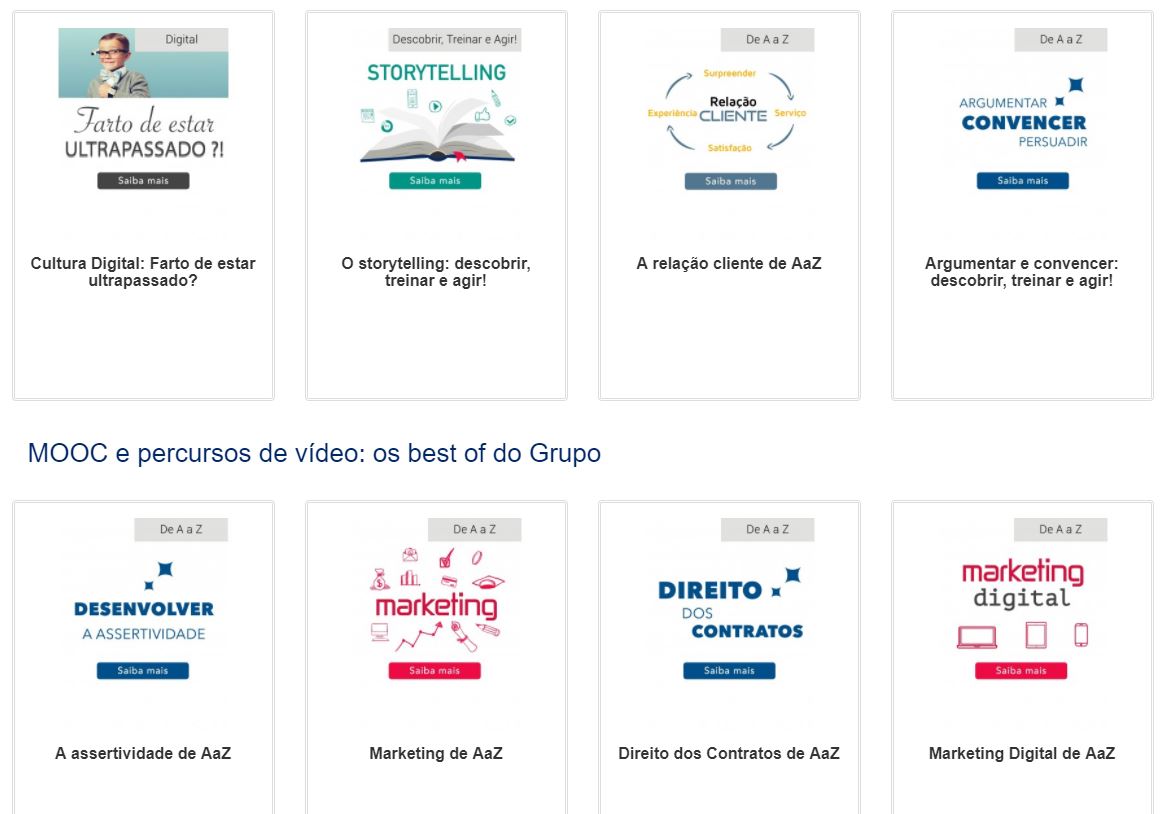 “Cultura Digital: farto de estar ultrapassado”, “O storytelling: descobrir, treinar e agir”, “A Relação Cliente de A a Z”, “Falar em Público” são alguns dos conteúdos disponíveis on demand e que garantem uma formação à medida de cada colaborador.
