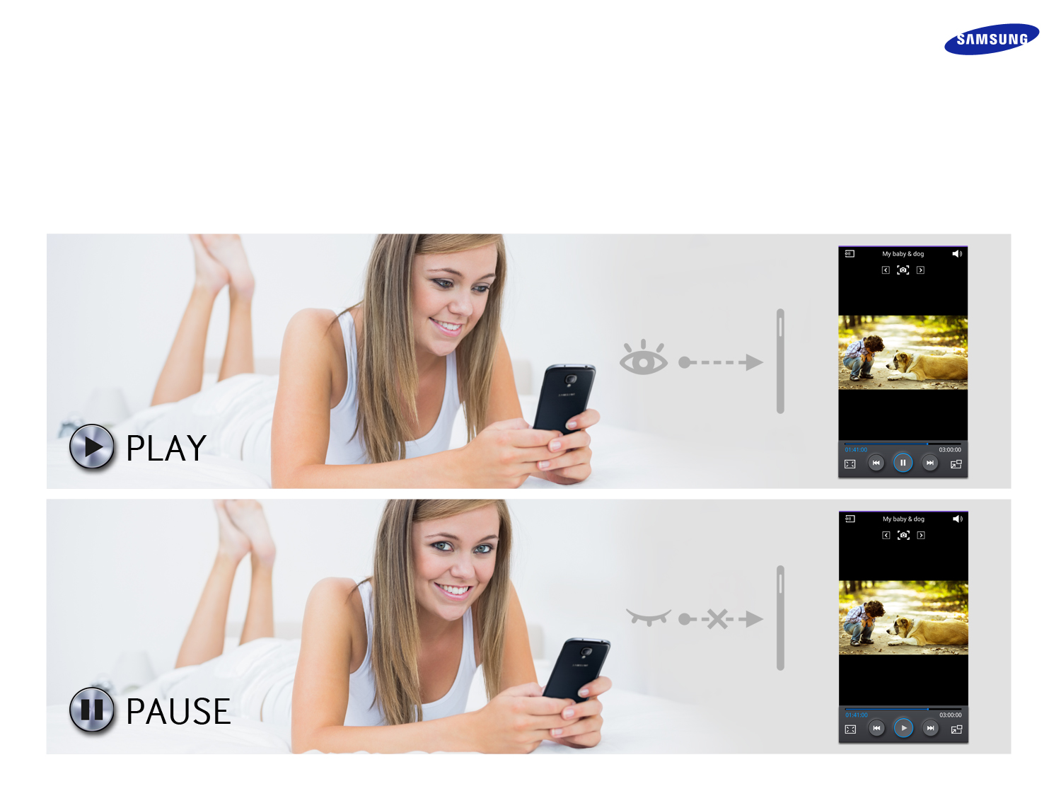 A tecnologia de reconhecimento facial, potenciada na câmara, é usada para a Samsung Smart Pause, que serve para pausar um vídeo quando o utilizador desvia o olhar do ecrã, e voltar à reprodução quando este volta a olhar para o equipamento. É também usada pela Samsung Smart Scroll, que permite que o utilizador faça scroll para cima e para baixo sem tocar no ecrã.