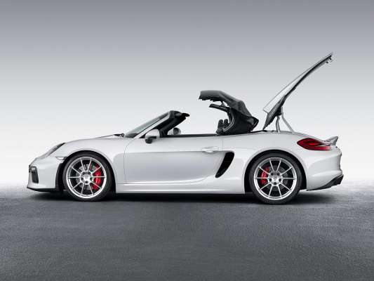Tem suspensão desportiva reduzida em 20 mm de altura, travões provenientes do 911 Carrera, uma direcção mais directa e um motor boxer de seis cilindros com 3,8 litros a debitar 375 CV (276 kW). O novo Boxster Spyder demora apenas 4,5 segundos dos 0 aos 100 km/h; a velocidade máxima é de 290 km/h. O consumo combinado NEDC é de 9,9 l/100 km.