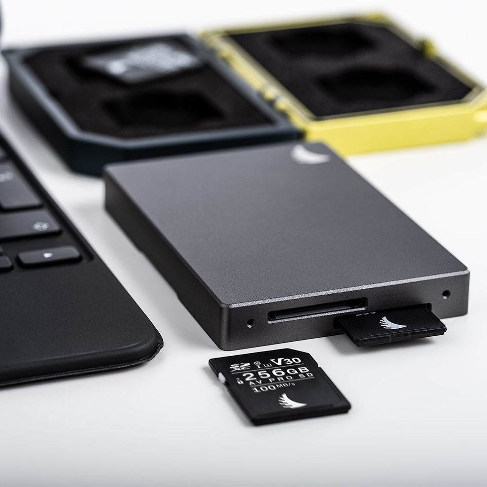 A Angelbird apresenta ainda dois acessórios complementares: o leitor de cartões SD duplo e a caixa para cartões SD Media Tank™.