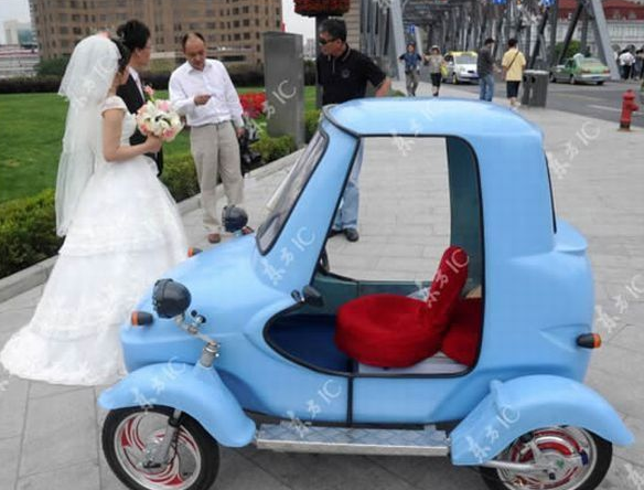 O pequeno carro eléctrico já é utilizado por Zhang Haiting nas suas deslocações diárias à cerca de 1 ano e tem dado nas vistas nos seus passeios por Xangai.