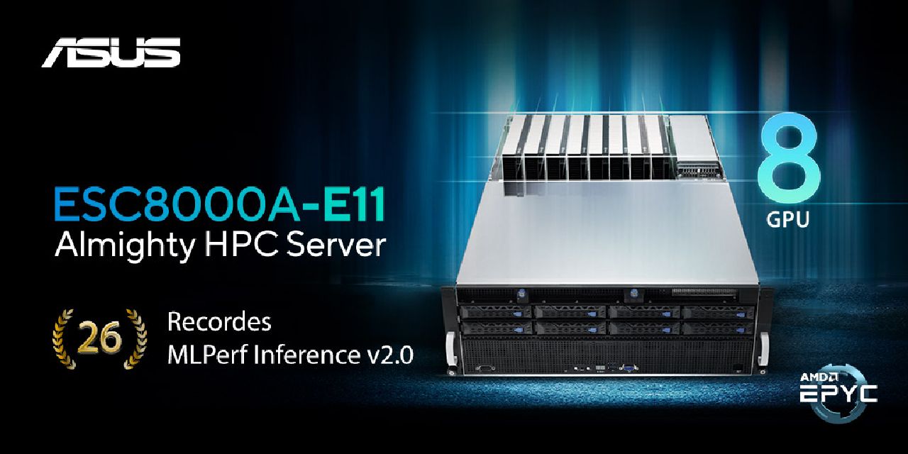Os resultados consistem em 12 recordes obtidos com um servidor ASUS ESC8000A-E11 configurado com oito GPUs Tensor Core NVIDIA® A100 de 80 GB; e 14 recordes com um servidor ASUS ESC4000A-E11 com quatro GPUs Tensor Core NVIDIA A30 de 24 GB.
