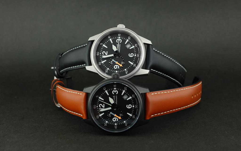 A caixa em aço tem 41,4mm de diâmetro, vidro de safira e correia em cabedal (dois tons de castanho e preto à escolha).