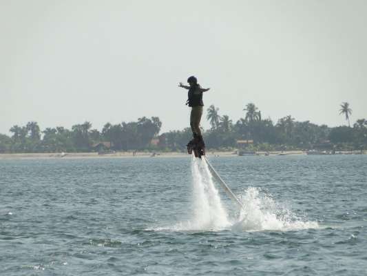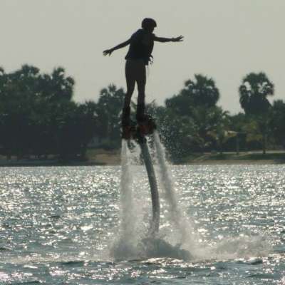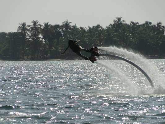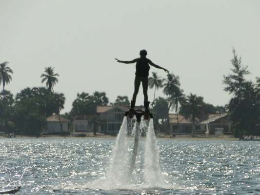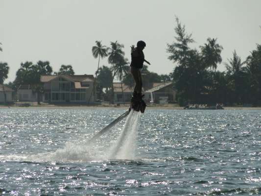 O Flyboarding é um desporto aquático que utiliza a pressão gerada pela rotação de um jet sky, que se quer parado e com uma rotação constante entre as 5 e as 7.000 rotações, potência canalizada através de uma mangueira que impulsiona o utilizador para voar sobre a água. Sim, voar sobre a água!