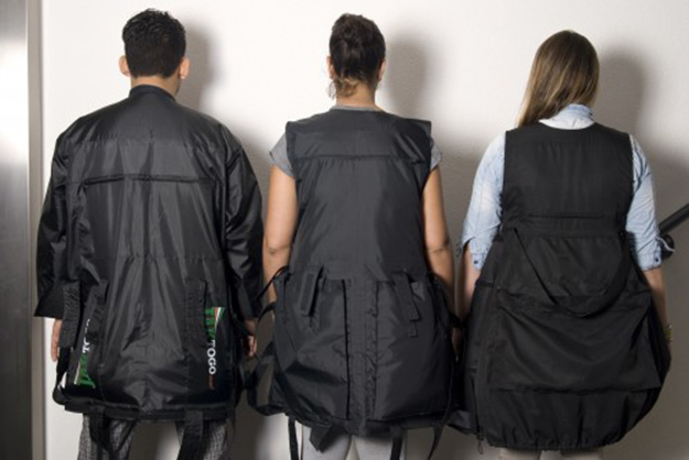 Quem já sofreu na pele o que é viajar em companhias de aviação low cost, sabe que um dos grandes problemas dos passageiros é a bagagem e o peso dela. Essas companhias não são simpáticas e cobram “coro e cabelo” quando a balança acusa qualquer tipo de excesso. É para contornar esta problemática bem real num mundo que cada vez viaja mais, que a Jaktogo (pelas fotos é uma empresa que reuniu um grupo de amigos em torno de uma ideia) comercializa aquilo que designa por “casaco bagageira” ou “mala acasacada” ou similar.